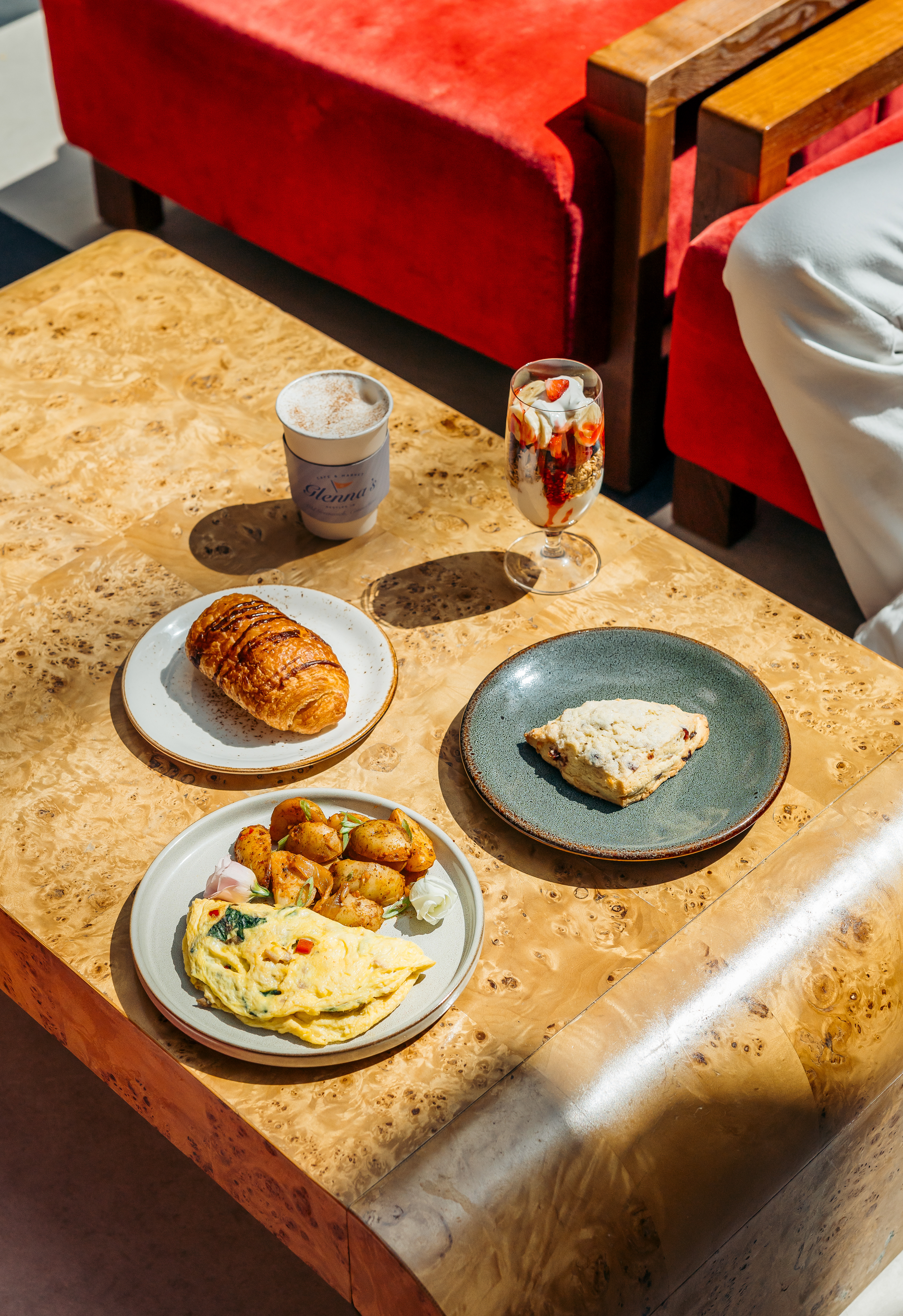 We start with Breakfast from the Hyatt Cafe on property, displayed creatively for a instagram reel.